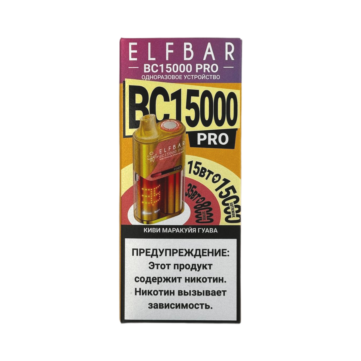 ELFBAR 15000 BC PRO Киви маракуйя гуава – идеальный выбор для тех, кто ищет яркие и незабываемые вкусовые впечатления. Стильный дизайн, передовые технологии и непревзойденное качество делают эту электронную сигарету превосходным решением для требовательных пользователей, ценящих инновации и комфорт.