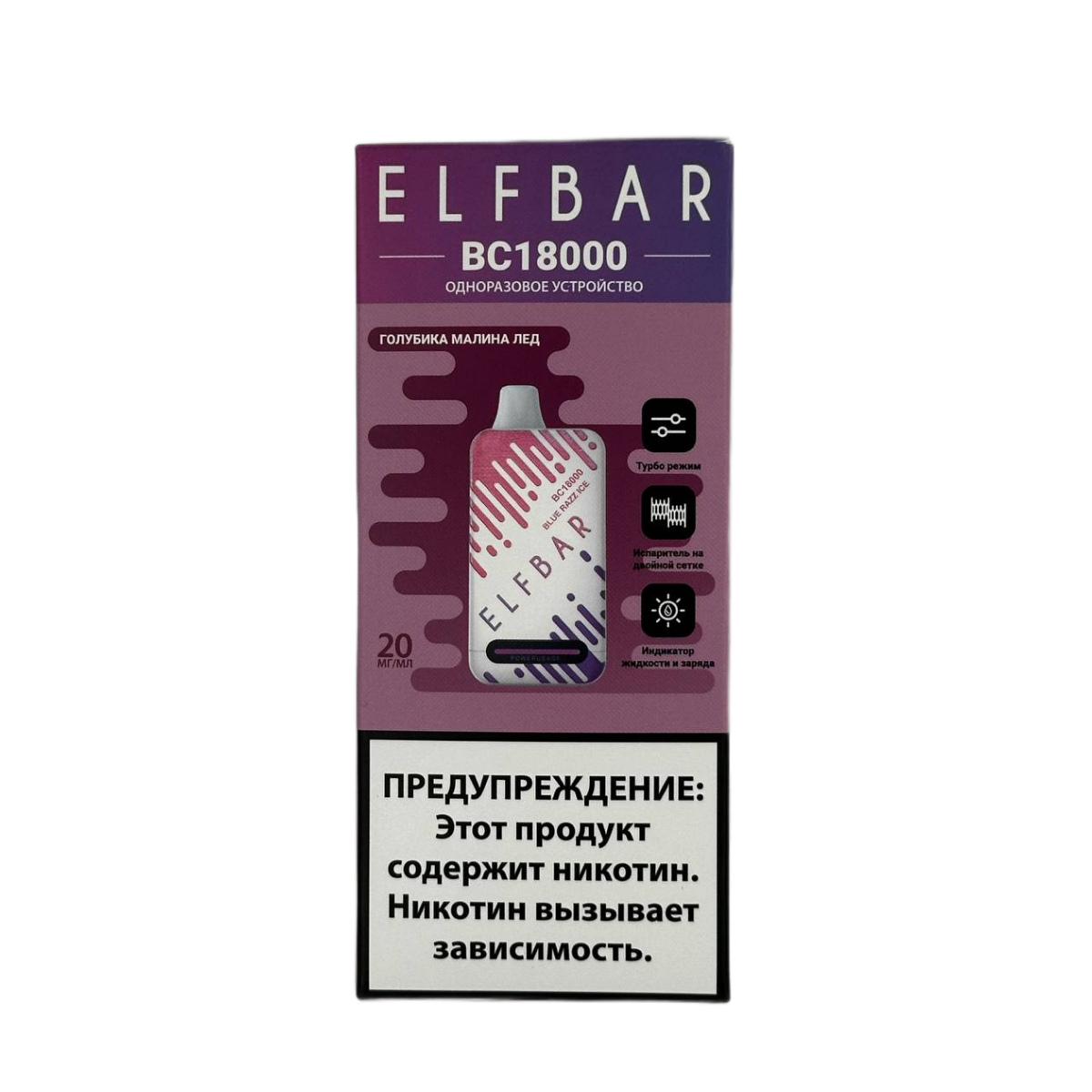 Электронная сигарета ELFBAR 18000 BC Голубика малина лед – превосходный выбор для настоящих ценителей парения. Магазин Snusbar представляет инновационную модель, которая объединяет передовые технологии и непревзойденный вкусовой профиль.