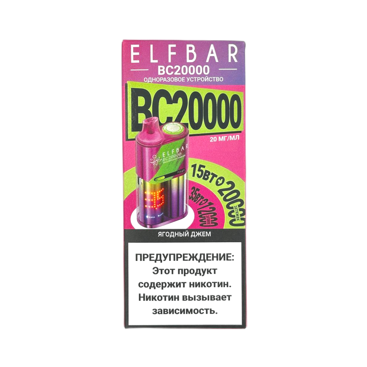 Электронная сигарета ELFBAR 20000 BC Ягодный джем – идеальный выбор для любителей насыщенных фруктовых вкусов. В магазине Snusbar представлен широкий ассортимент электронных сигарет с уникальной ароматической композицией.