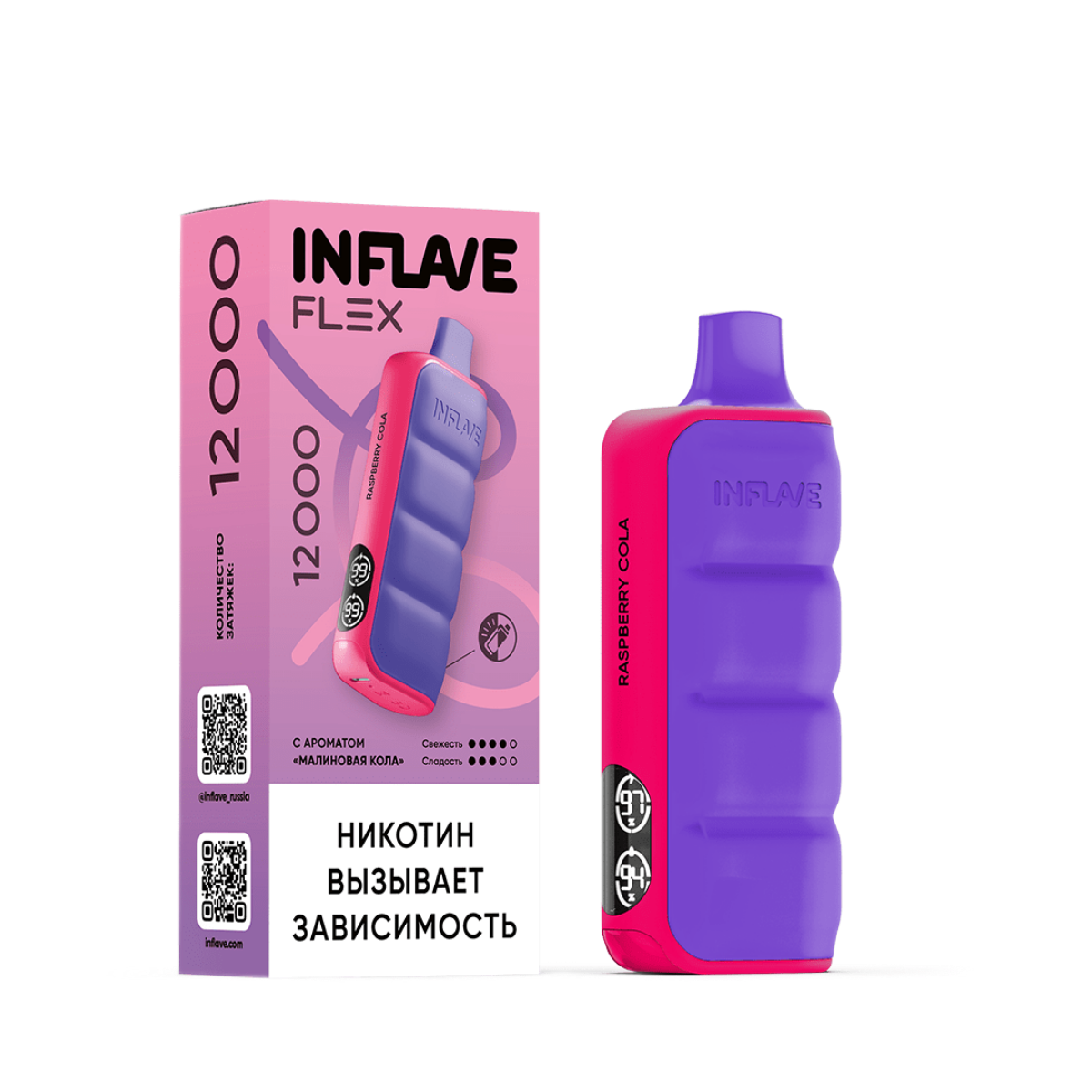 Электронная сигарета INFLAVE FLEX 12000 “Малиновая кола” – идеальный выбор для тех, кто ценит инновационные вкусовые решения. Приобретайте в Snusbar – надежном магазине электронных сигарет!