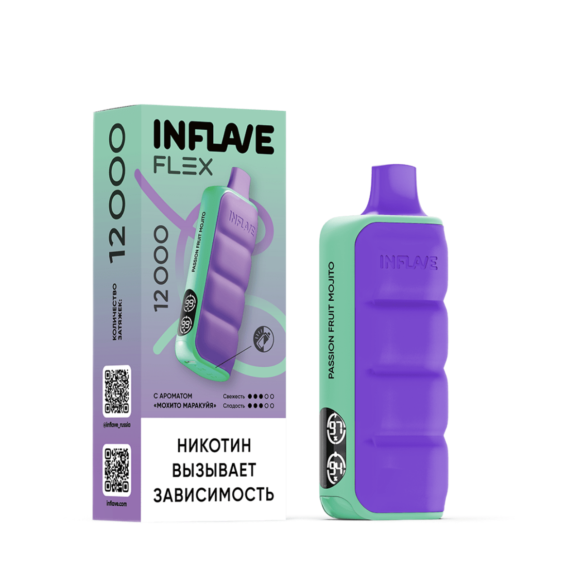Электронная сигарета INFLAVE FLEX 12000 “Мохито маракуйя” – отличный выбор для тех, кто ищет яркие вкусовые впечатления. Приобретайте в Snusbar – надежном магазине электронных сигарет!
